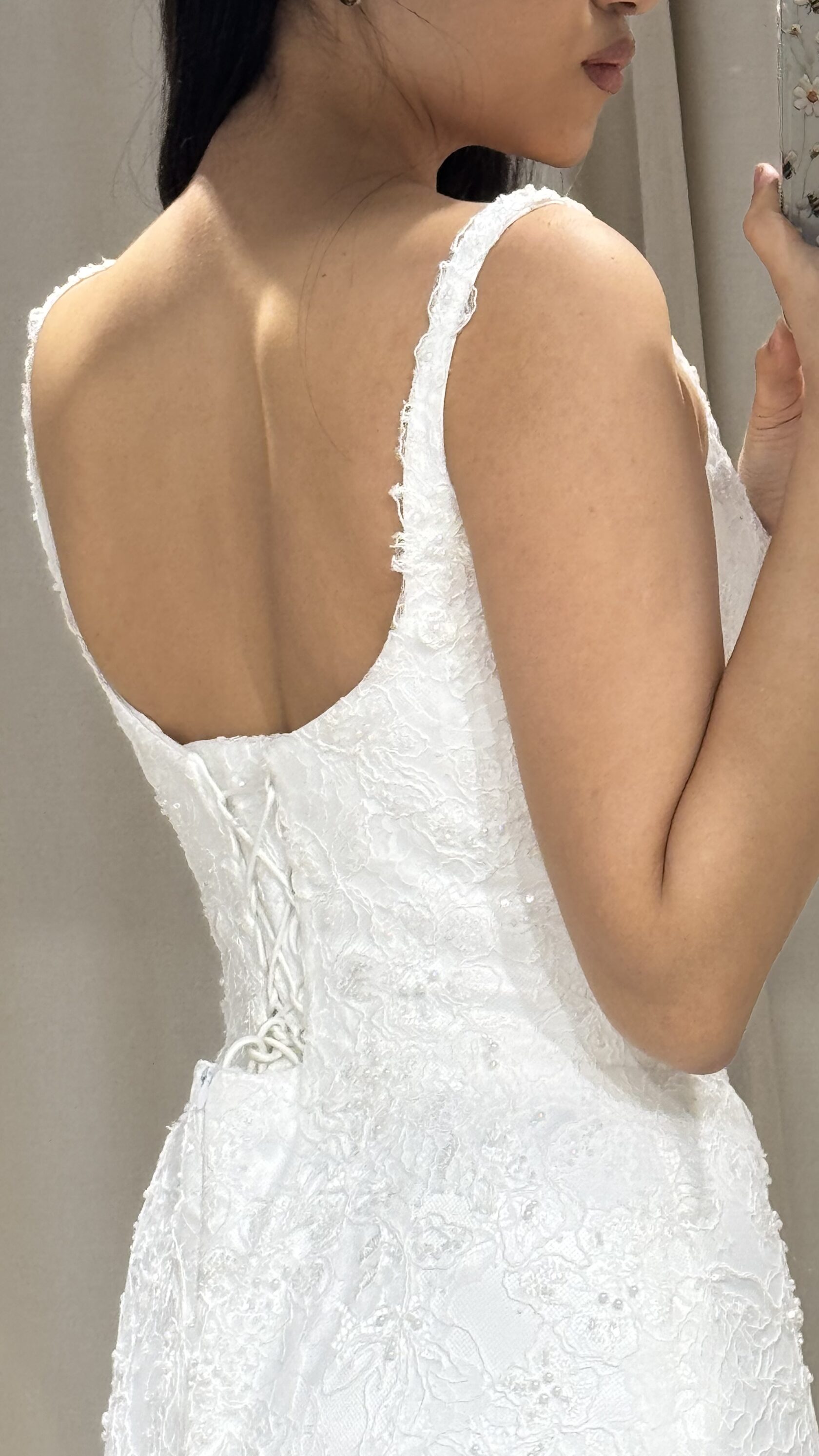 Этот образ - гармония современной нежности и архитектурных форм. Объёмные рукава придают образу драматичность, а мягкая драпировка юбки легко струится в движении, создавая торжественный и утончённый силуэт.